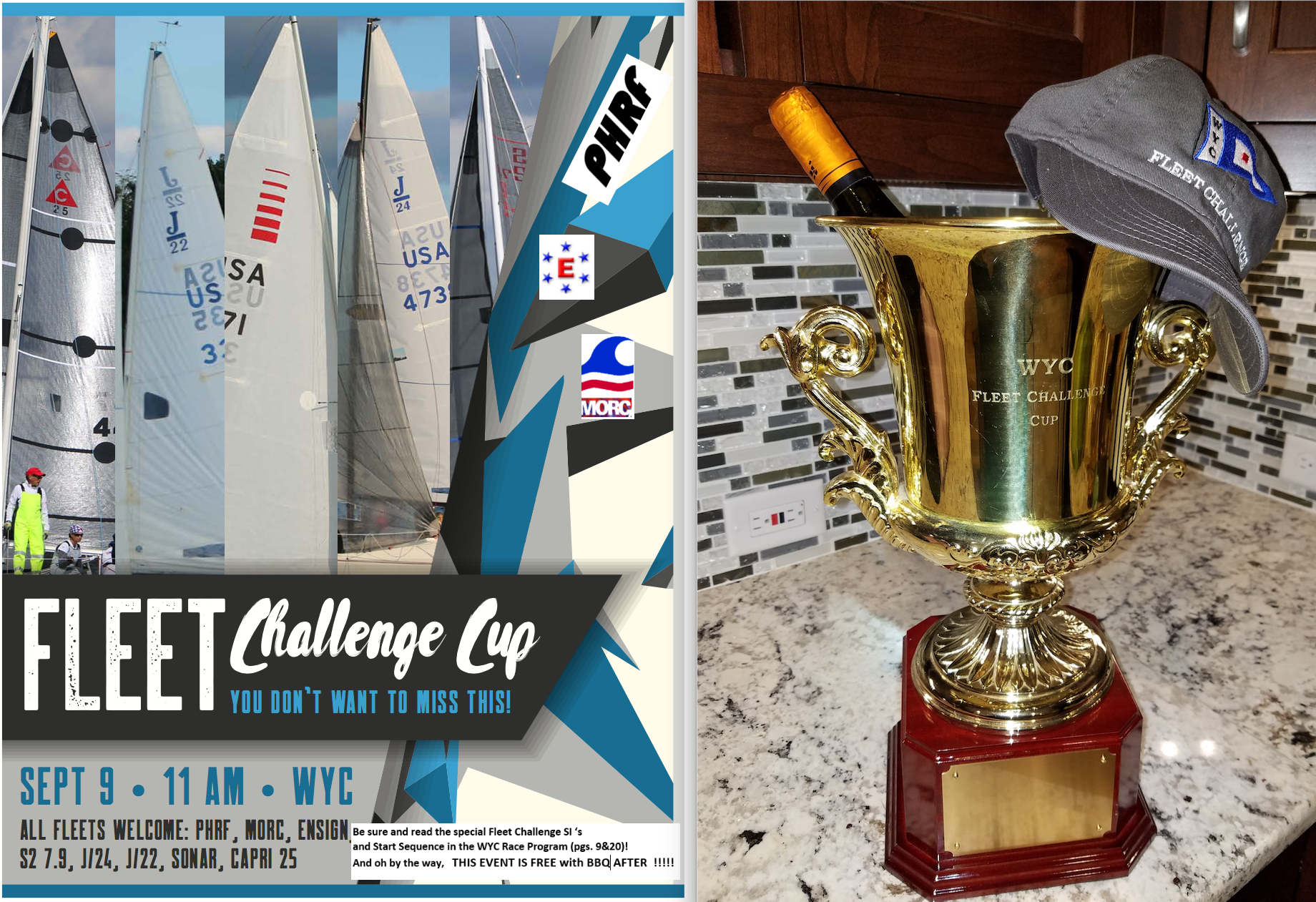 You size up the competition at the start, Capri 25s, J22s, J24s, S2s, Sonars, Ensigns, PHRF, and MORC boats. As the gusts roll through, you realize it’s the first time in the club's history that many of you will share the same start, same course, same competition, and same prize. At stake is a chance to be named the best sailors and champion fleet of the club by winning an exclusive trophy cup. Call it what you will, a PHRF race on steroids, a one design thriller, or simply WYC rock star sailing! This, my fellow sailors, is now a reality, and it's called the FLEET CHALLENGE CUP!